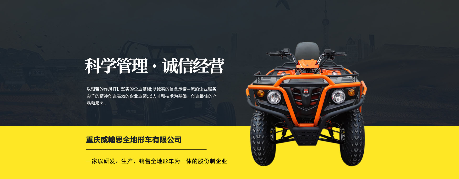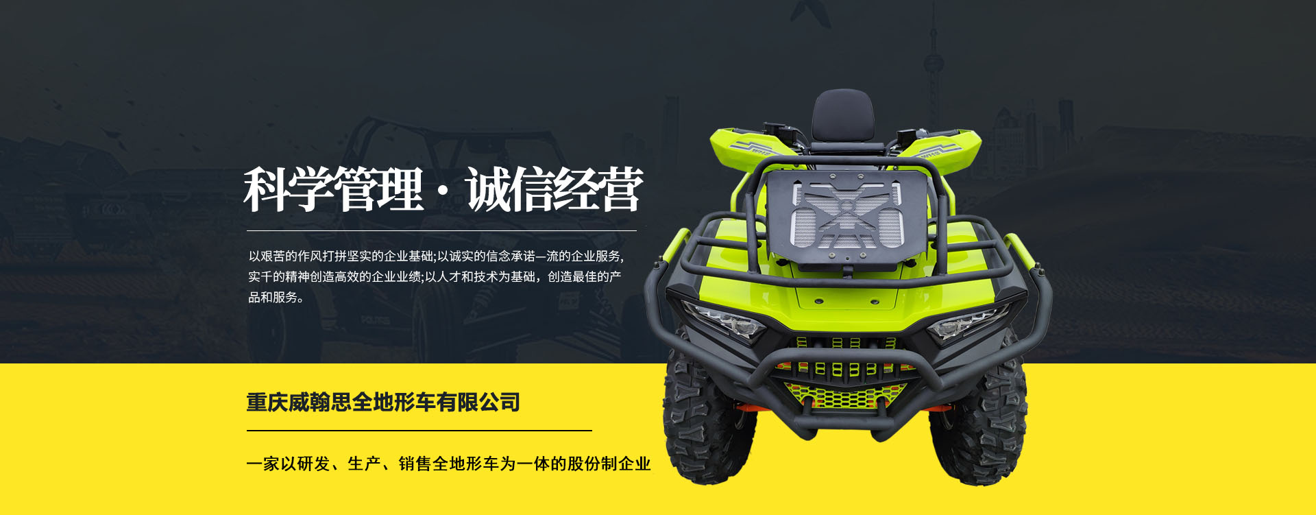 重慶威翰思全地形車有限公司成立于2016年9月,一家以研發(fā)、生產(chǎn)、銷售全地形車為一體的股份制企業(yè)。公司銷售額超過(guò)5000萬(wàn)。現(xiàn)有專業(yè)市場(chǎng)售后服務(wù)團(tuán)隊(duì)。公司秉承“敬業(yè)、超越、活力、用戶至上”的企業(yè)精神,“以人為本,合作共贏;”的核心價(jià)值觀,“嚴(yán)格管理創(chuàng)優(yōu)質(zhì)、名牌戰(zhàn)略拓市場(chǎng)”的質(zhì)量方針,使公司一步步邁上新的臺(tái)階。公司與重慶航天巴山摩托車制造公司達(dá)成戰(zhàn)略合作協(xié)議。共同出資致力于沙灘車旅游市場(chǎng)產(chǎn)品研發(fā),項(xiàng)自運(yùn)營(yíng)指導(dǎo),市場(chǎng)維護(hù)等全方位市場(chǎng)拓展。重慶航天巴山摩托車制造公司授權(quán);重慶威翰思全地形車有限公司為中國(guó)區(qū)唯─戰(zhàn)略合作伙伴。